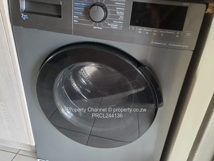 Chic, fully furnished 2-bedroom, 1-bath flat in Aspindale Park, Harare West — ideal for professionals or a small family. Set on a 400 m² stand with 180 m² of well-appointed living space, the apartment welcomes you with a bright open-plan lounge featuring a comfortable L-shaped grey sofa, wall-mounted TV and large windows that flood the room with natural light (see photos). The master bedroom offers a crisp white double bed with a simple headboard and plenty of daylight through curtained windows.