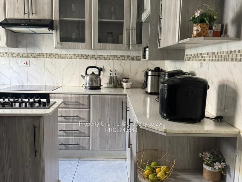Designed for modern living, the property is equipped with a borehole, water tank, and solar backup system, ensuring consistent water and power supply. Additional features include a carport for secure parking and a chicken coop, adding a touch of self-sufficiency to the home.