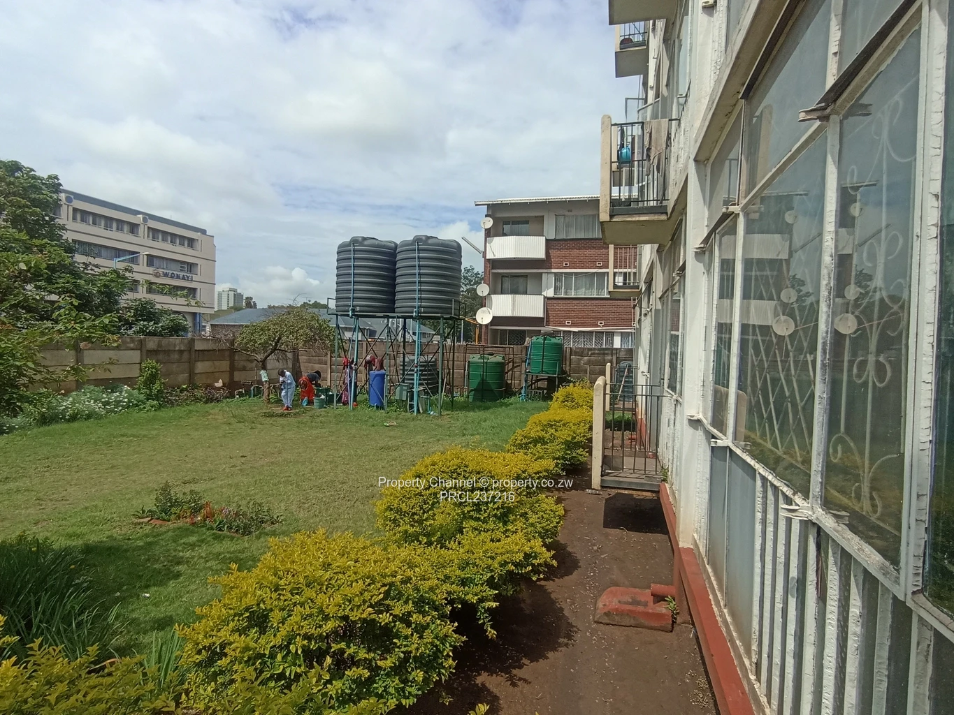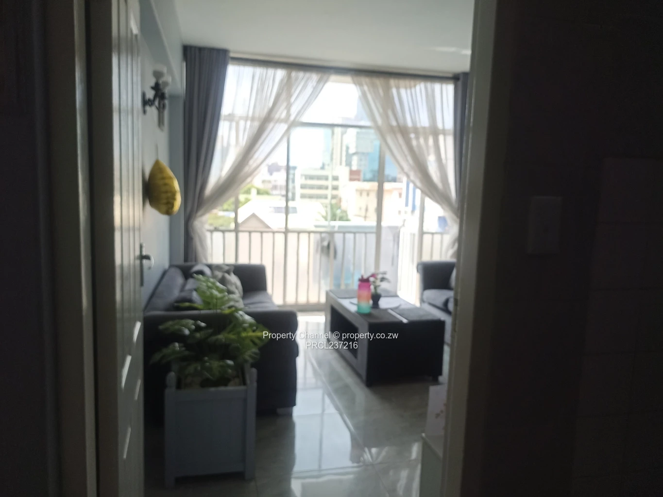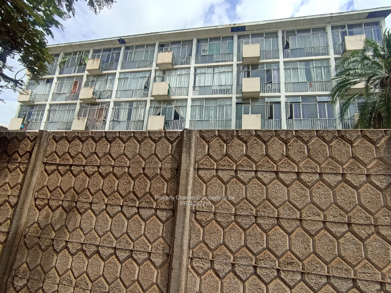 Bright, spacious and well-situated 1-bedroom, 1-bathroom apartment in the heart of Avenues, Harare CBD — 90 m² of comfortable city living. Located in a secure, established block behind a high perimeter wall and gated entrance, this apartment enjoys generous natural light from large front windows that frame leafy communal gardens and city skyline views. The open-plan living area is cosy and practical, with room for lounge; the fitted kitchenette offers modern convenience with fridge space and ample work surfaces. Bedroom is roomy and tranquil, while the bathroom includes a full bathtub and basin cabinet. Communal areas are well kept — manicured lawns and flower beds provide a pleasant outlook and outdoor space; internal corridors and stairwell are clean and accessible. Ideal for a professional, couple or investor seeking an easily managed city-base with immediate access to offices, shops and transport in the CBD. Arrange a viewing today to appreciate the light, layout and prime location.