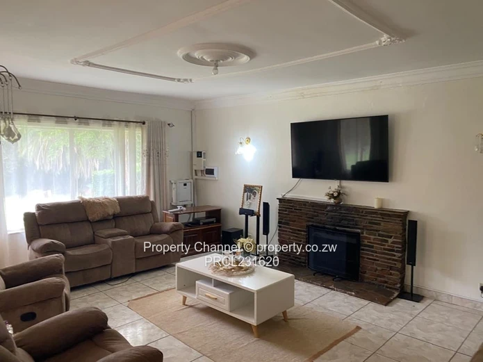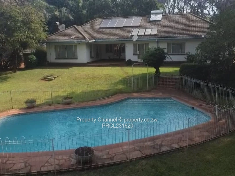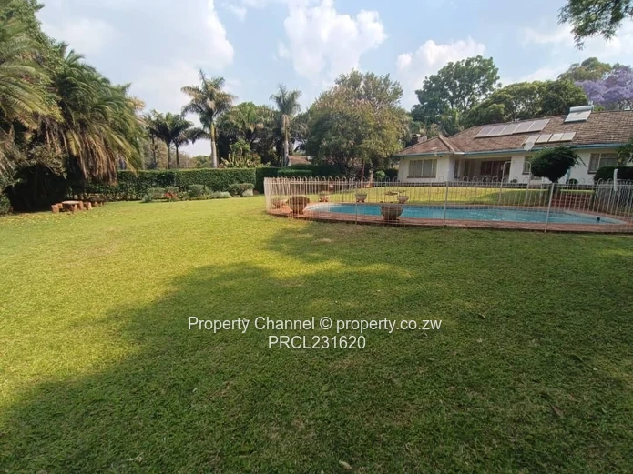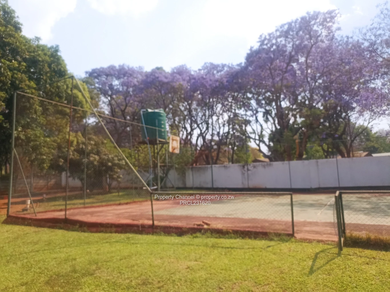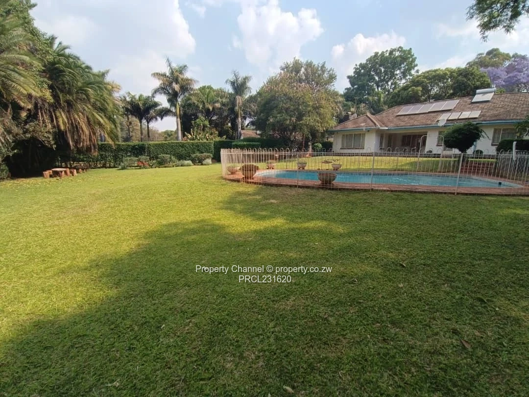 This exquisite executive house in Chisipite boasts a generous 1 acre of beautifully landscaped grounds. The expansive lawn, accented by vibrant jacaranda trees, invites residents into a world of serenity and style.