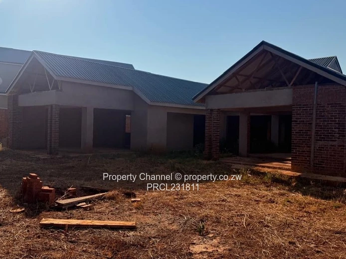 Incomplete 4 bedrooms 2 en-suites, open plan lounge dining, kitchen, main bathroom, study/office, double lock up garage. Walled on all sides sitting on 2000m2 title deed