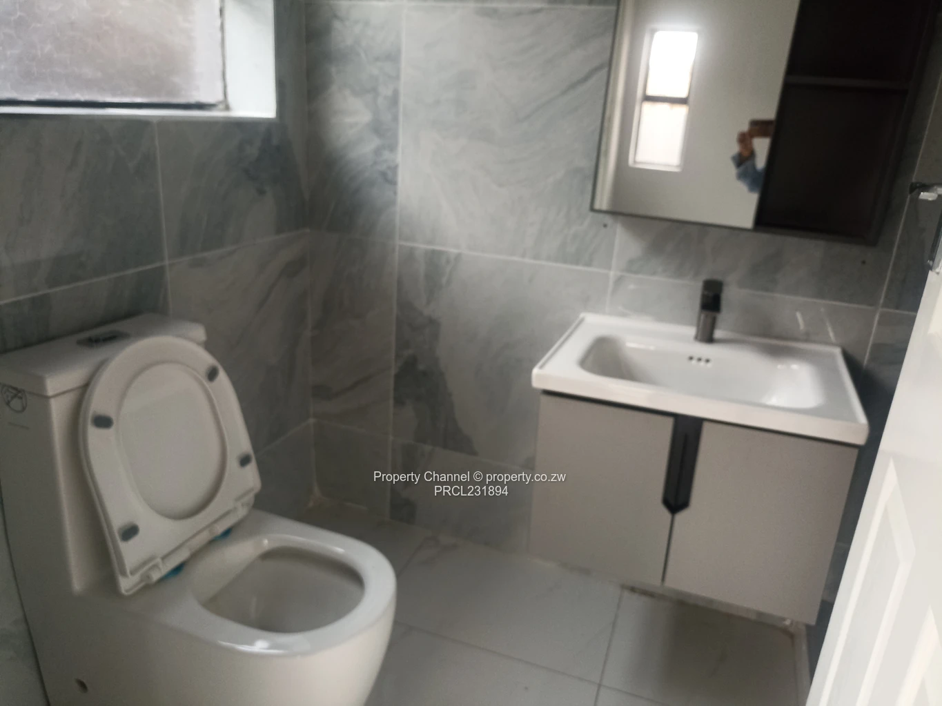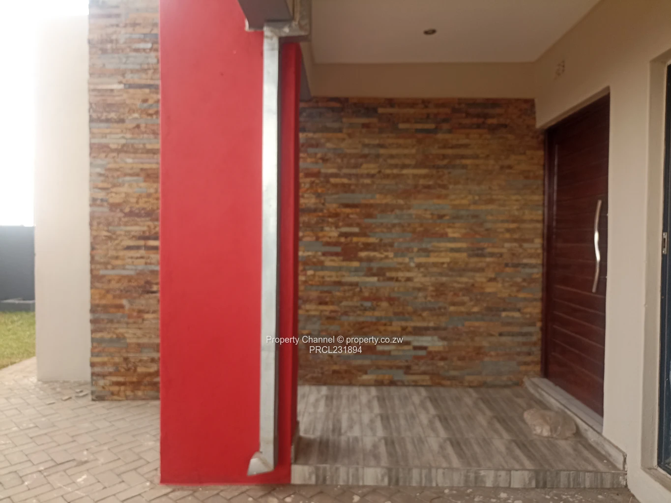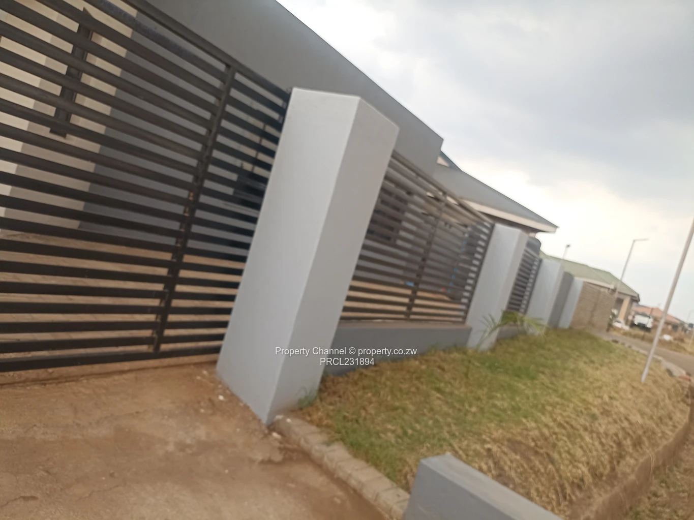 Welcome to this charming 3-bedroom house located in the desirable Rainham area of Harare. The exterior presents a modern aesthetic, highlighted by a striking red accent wall and sleek metal fencing, ensuring both security and style. A paved walkway invites you to the entrance, while minimalist landscaping adds a touch of nature.