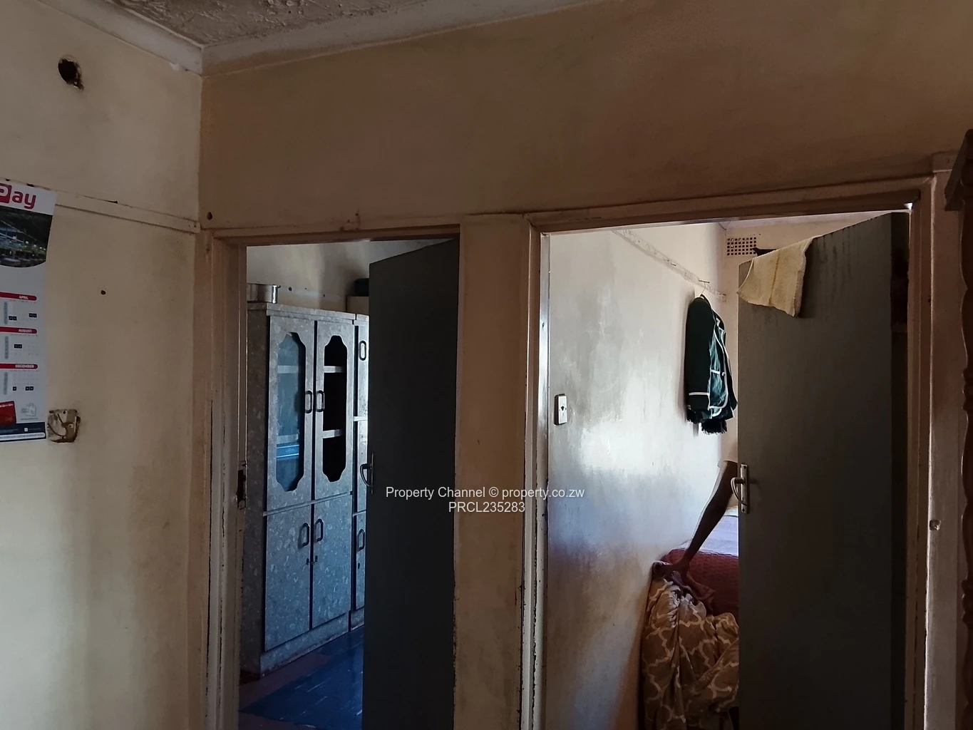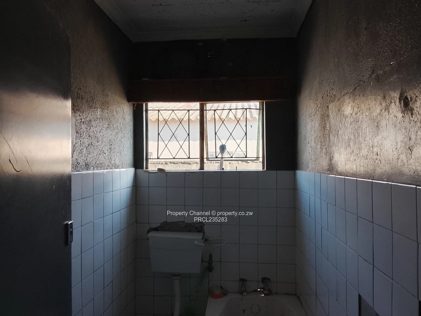 Charming and practical 5-bedroom, 2-bath family home in the heart of Chitungwiza, Mashonaland East — perfect for a large family or an investor seeking rental potential. The property features a solid red-brick façade paired with bright turquoise-painted walls (see photos) and a secure walled perimeter with a gated carport and verandah. The wide side passage provide easy vehicle access and outdoor space for children or a garden. Inside you’ll find a generous lounge with decorative ceiling details, a functional kitchen with tiled splashback and space for appliances, two bathrooms with tiled wet areas, and a central corridor leading to five bedrooms secured by metal window grills. Practical utilities include municipal water, a sewer connection and reliable ZESA supply. This home has good bones and presents an excellent opportunity for cosmetic upgrades to unlock added value — move in and renovate at your pace, or rent rooms for immediate income.