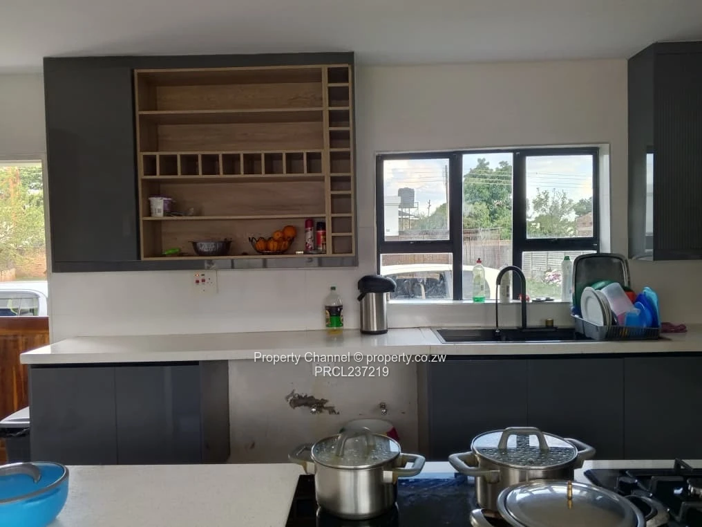 Beautiful double storey house comprising of 4 bedrooms, 2 main bedrooms with en-suite, spacious lounge and dining. The kitchen has modern fittings. There is also a borehole, water tank, guest toilet, double lock-up garage, 3 beds cottage with lounge, dining, toilet and shower. The total land size is 2089sqm. It has clean title deeds.