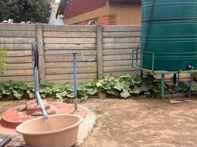 Charming compact one-bedroom house in Zengeza, Chitungwiza — ideal for a starter home or rental investment. Sited on a neat 180 m² stand with a 100 m² building footprint, this fully walled property offers privacy and security. The yard is concreted with defined planting beds and a tidy vegetable patch; an elevated 2 000+ litre water tank and a manual pump ensure reliable water supply. The exterior shows solid block construction, a green timber door with awning, and security bars on the windows. Solar panels are visible on the roof, adding potential for reduced energy costs.