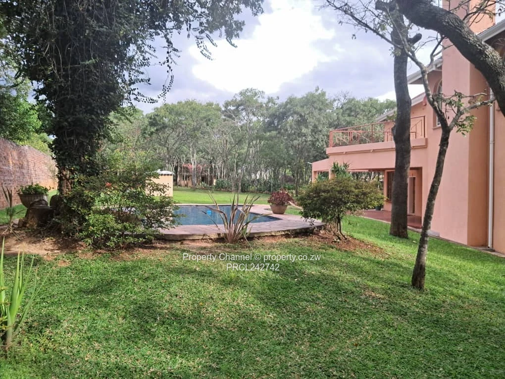 Stunning Glen Lorne family estate — 5 bed, 5 bath, set on 1.60 acres with a generous 900 m² of living space. As seen in the photos, the elegant terracotta double-storey façade is set back behind a sweeping, tree-lined lawn and mature indigenous trees, offering privacy and a peaceful outlook. A wide driveway leads to secure triple garage parking and guest turnaround.